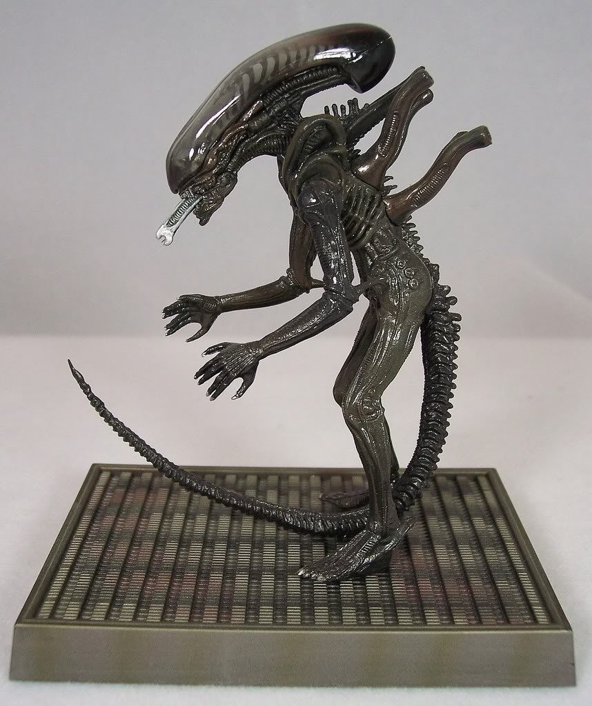 Alien Classic. Extremamente bem feito, reproduzindo fielmente todos os detalhes da criatura com minúcias incrivelmente precisas, levemente articulado, mede aprox. 12 cm de altura, acompanha base decorada, etc. Fabricado pela Konami.