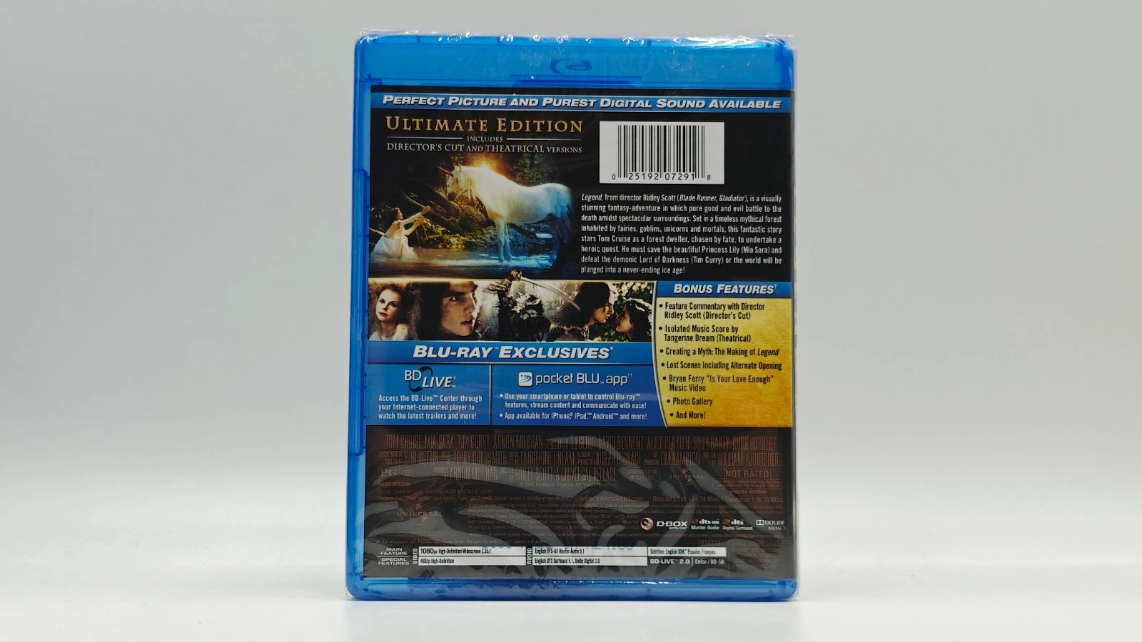 Após mudar para sempre a face do cinema de ficção científica com Alien e Blade Runner, o diretor Ridley Scott voltou seu olhar visionário para o gênero fantasia, unindo-se ao roteirista William Hjortsberg (Coração Satânico) para criar um conto de fadas cinematográfico de tirar o fôlego, com uma das representações mais impressionantes do Mal já vistas na tela. Em uma floresta idílica e ensolarada, o puro de coração Jack (Tom Cruise) leva seu verdadeiro amor, a Princesa Lili (Mia Sara), para ver um par de unicórnios brincando na orla da floresta. Mal sabem eles, porém, que o Senhor das Trevas (Tim Curry) enviou seus asseclas para capturar os unicórnios e cortar seus chifres, para que ele possa mergulhar o mundo em uma noite eterna. Depois que Lili e os unicórnios são feitos prisioneiros, Jack precisa se unir a um grupo de criaturas da floresta e descer ao covil subterrâneo das Trevas para enfrentar a criatura diabólica antes que seja tarde demais. Apesar de uma produção conturbada, na qual o elaborado cenário da floresta em tamanho real foi acidentalmente incinerado, e de uma longa pós-produção que resultou em múltiplas versões do filme (com trilhas sonoras concorrentes de Jerry Goldsmith e Tangerine Dream), Legend foi restaurado à versão original de Scott e aclamado por gerações de cinéfilos ansiosos por ver a visão singular de um mestre diretor sobre um mundo além da nossa imaginação.
