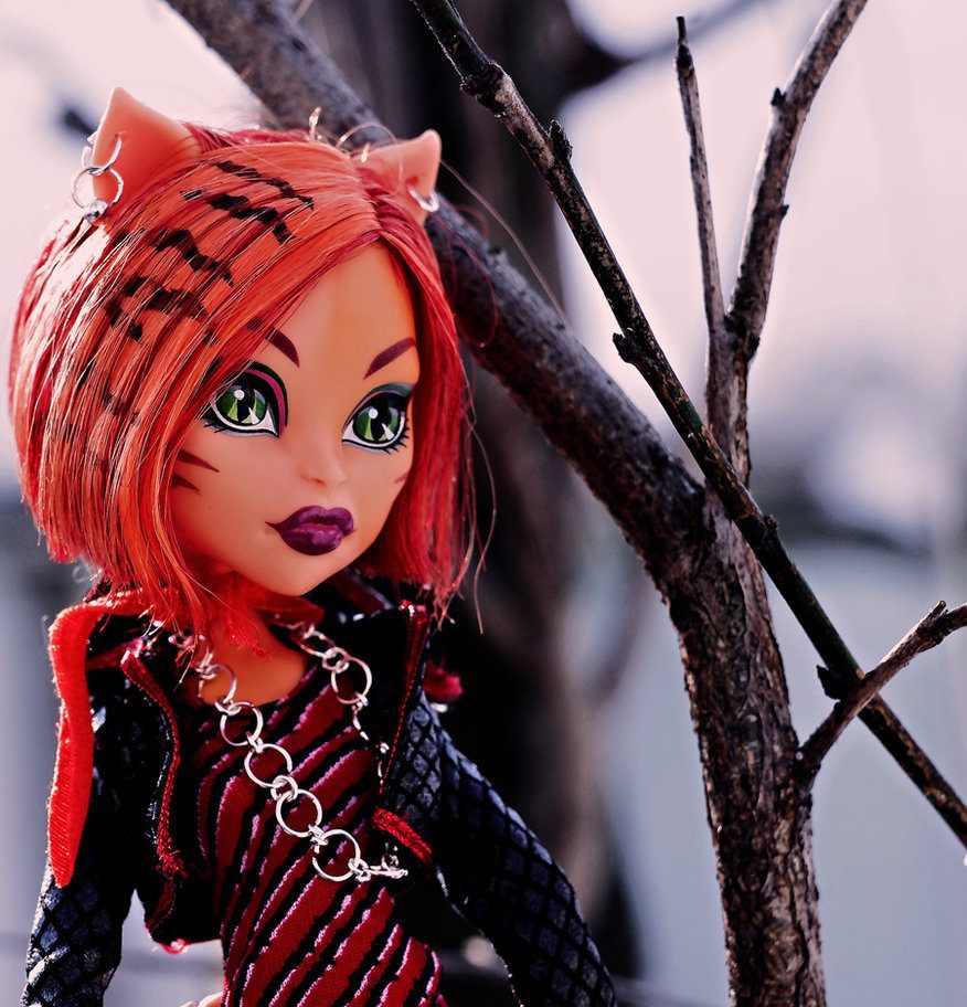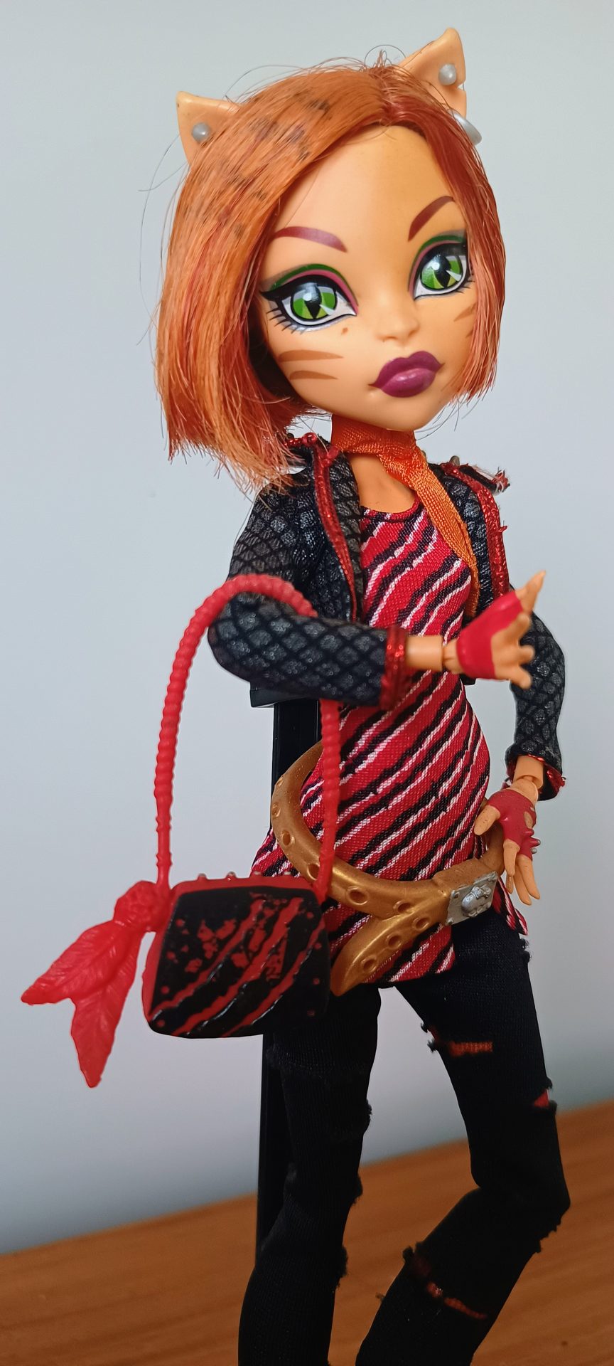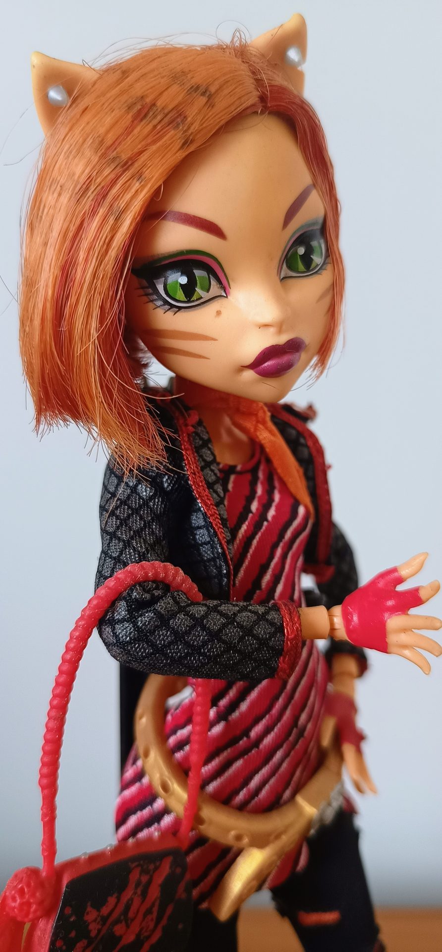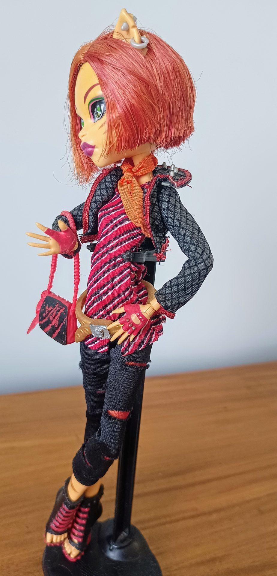 Monster High Toralei Stripes – Básica. Boneca totalmente articuladas, acompanha acessórios, suporte, mede aprox. 27 cm, fabricante Mattel.