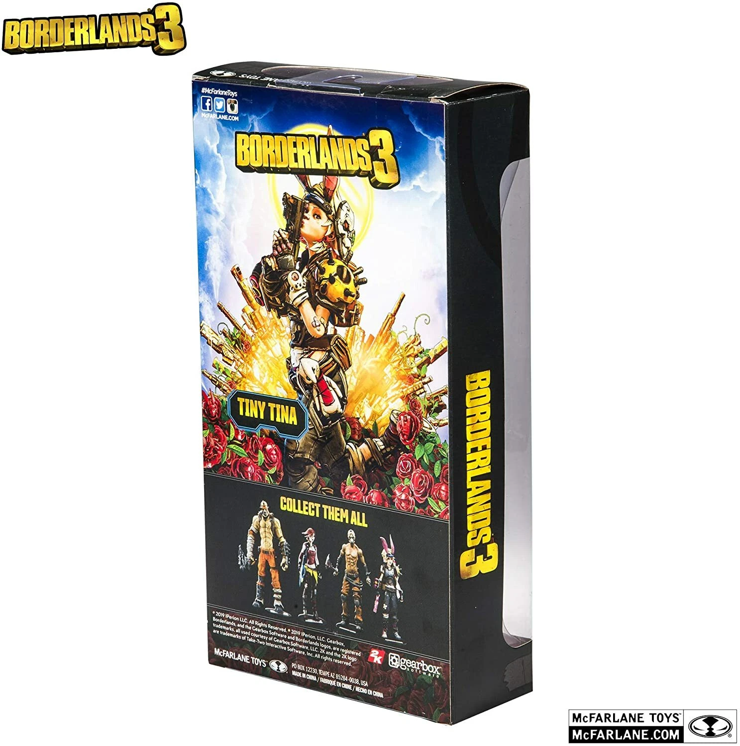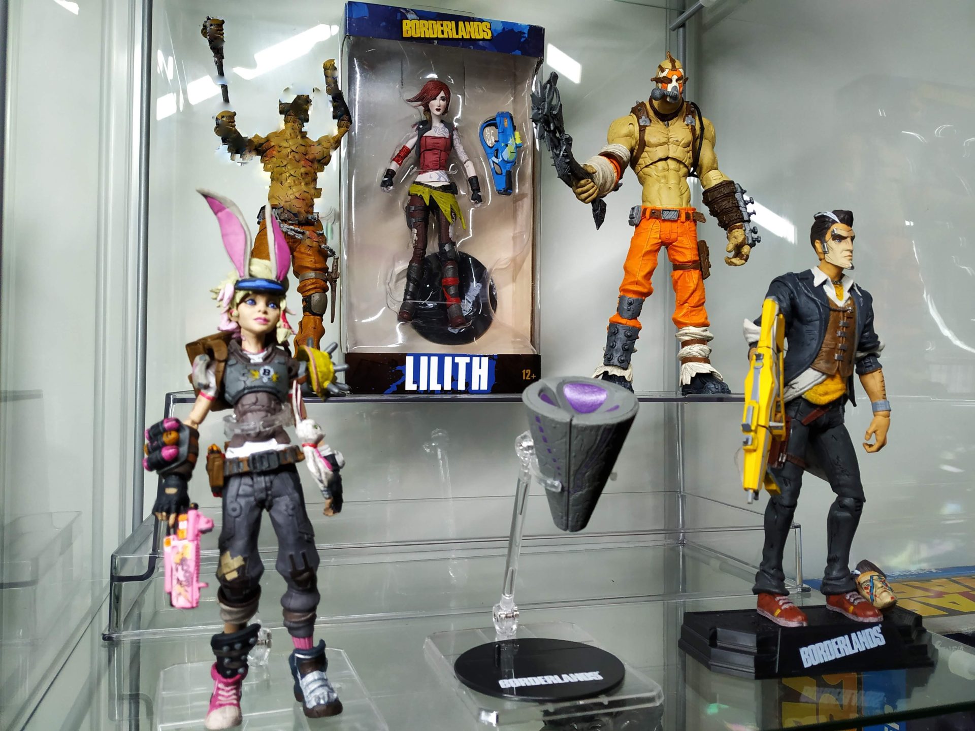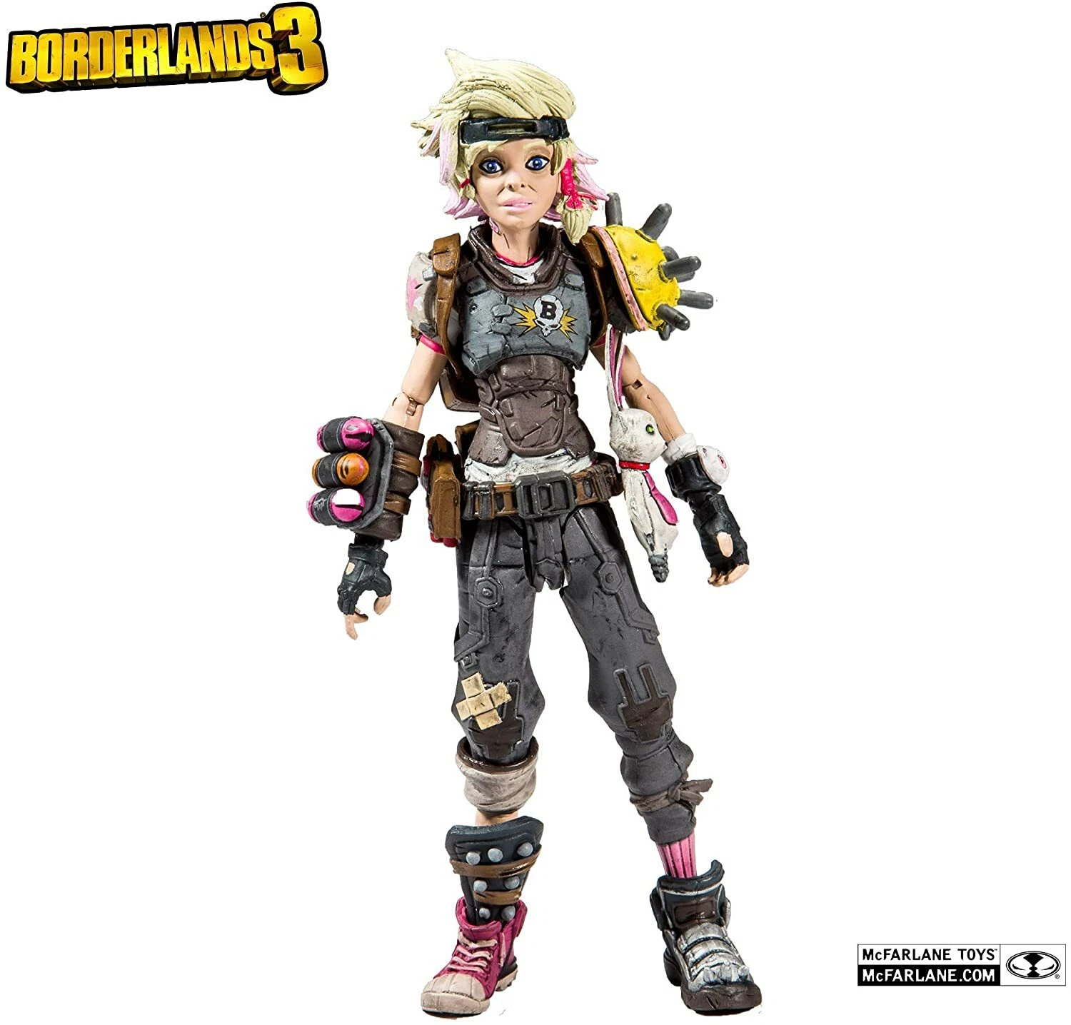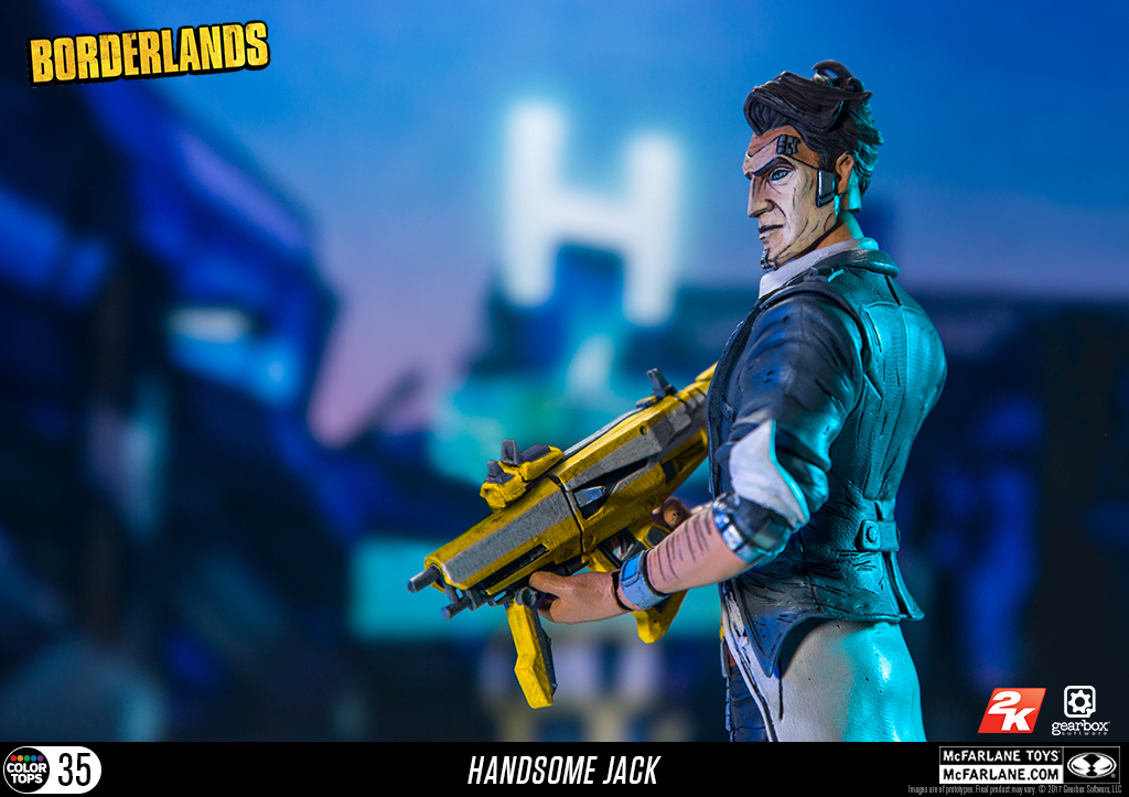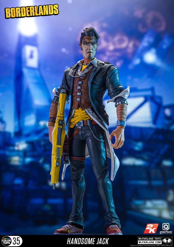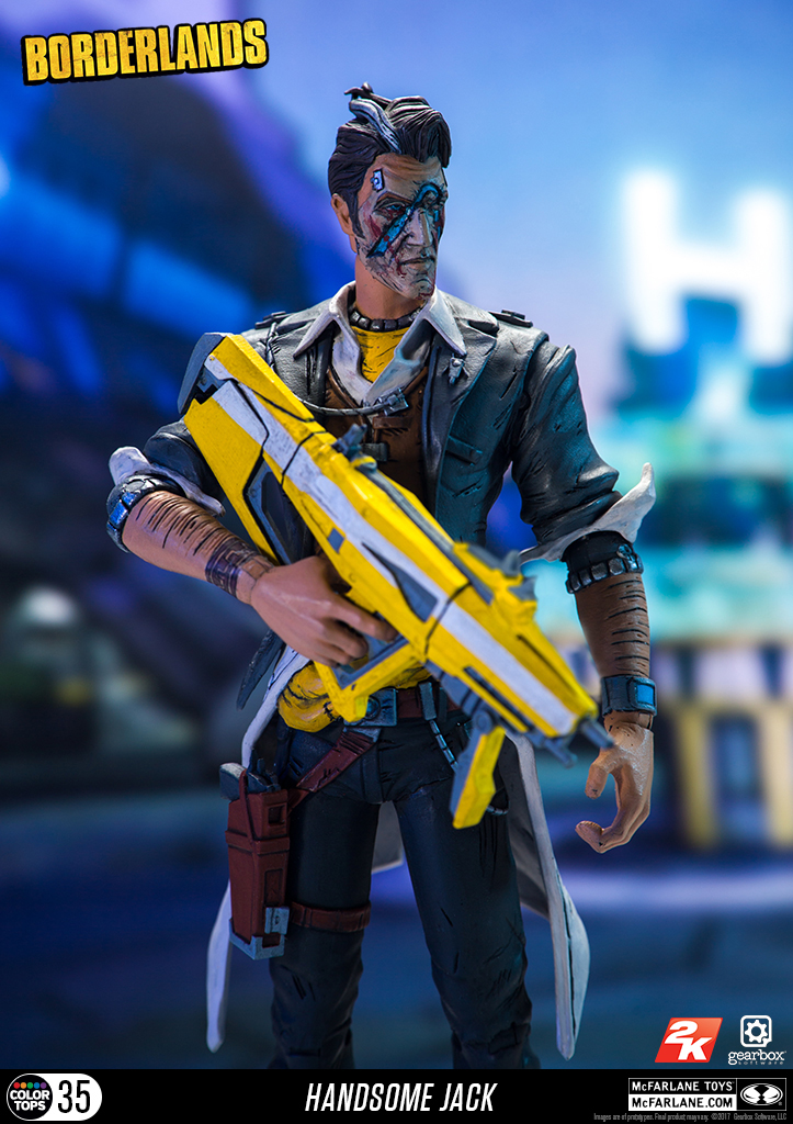 Borderlands Action Figure Set: Conjunto com 6 (seis) action figures de Borderlands, articuladas, detalhes impressionantes, acessórios, arma, etc. Medem aprox. 16 cm de altura. Fabricado pela Mc Farlane Toys.Este conjunto inclui: Lilith, Hansom Jack, krieg, Tiny Tina, Psicho e Tiny Tina Habbit mask.