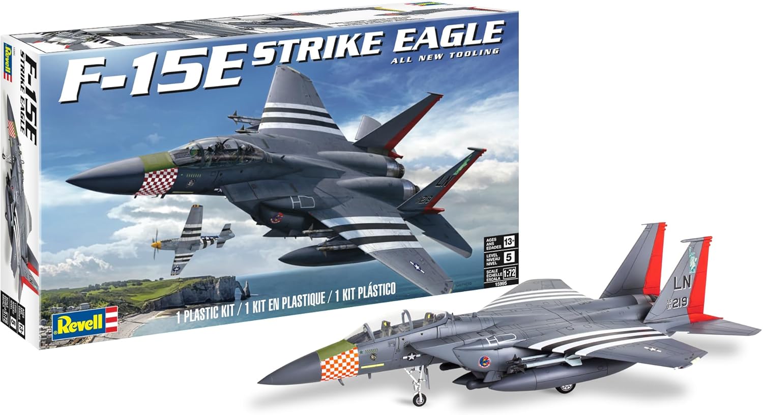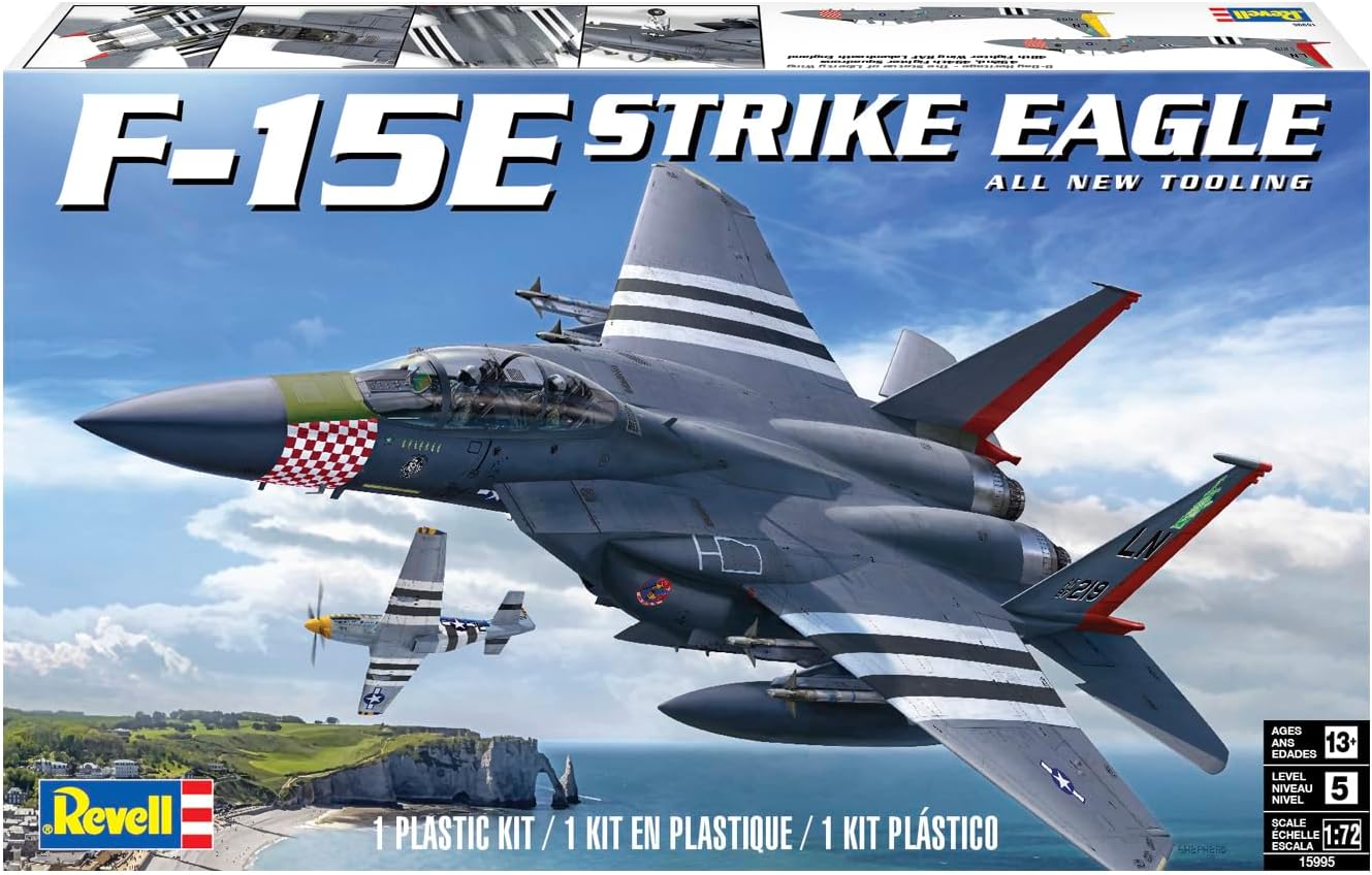 F-15E Strike Eagle. Kit de plastimodelismo, requer montagem e pintura, molde novo super detalhado, acompanha decais para duas versões, escala 1/72 mede aprox. 20 cm após montado, fabricado pela Revell alemã.