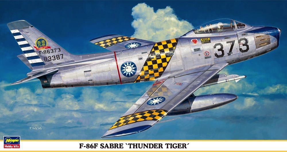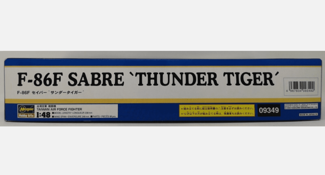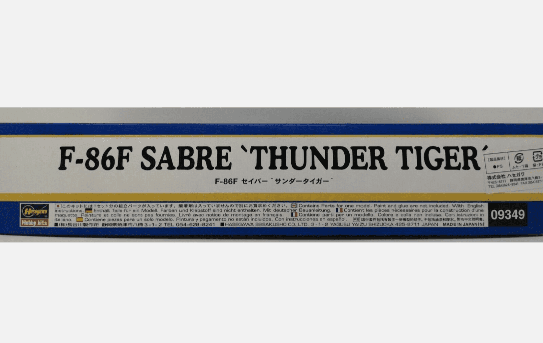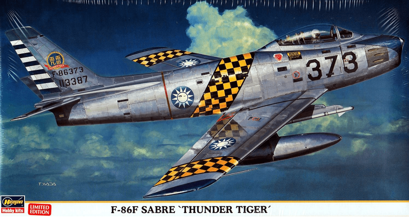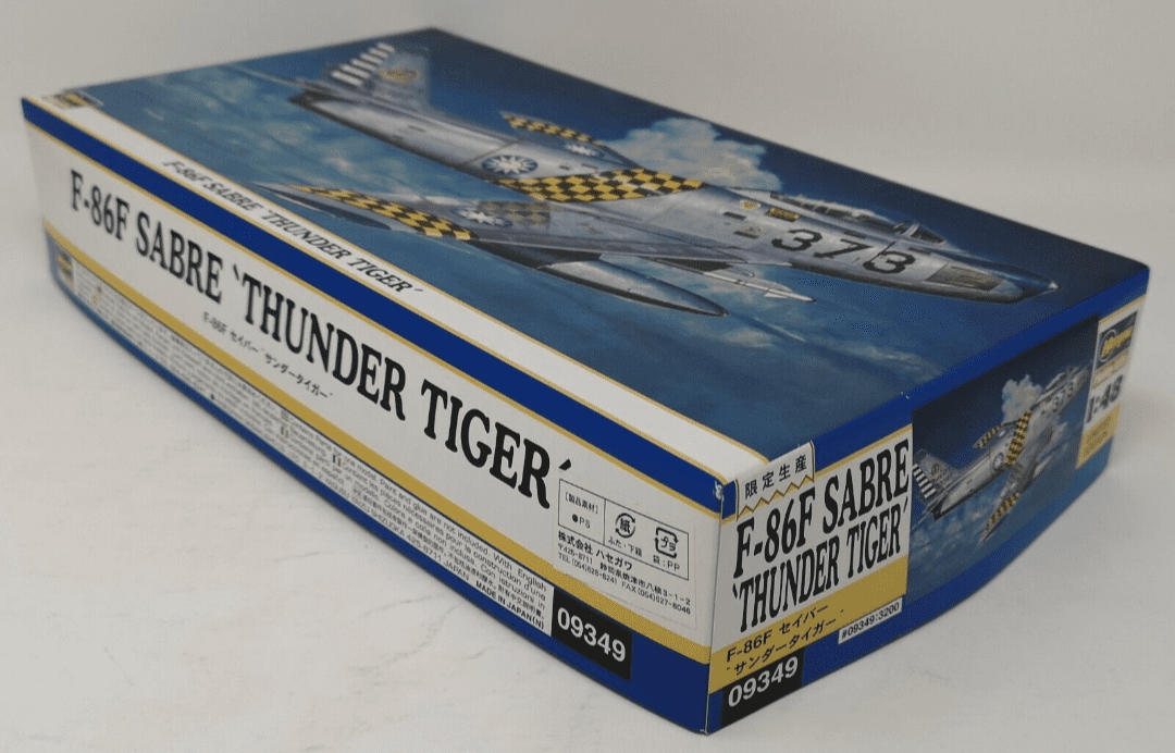 F-86F Sabre Thunder Tigers Limited Edition. Kit para montar de Plastimodelismo, requer montagem e pintura, super detalhado, interior completo, decais, escala 1/48 mede aprox. 25 cm, fabricado pela Hasegawa.