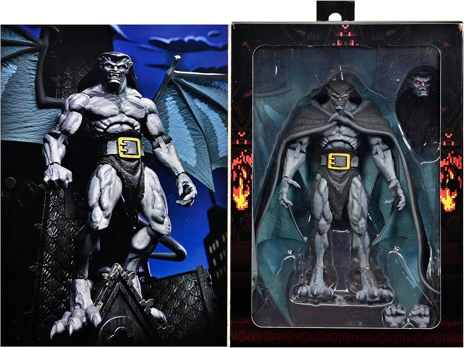 Gargoyles Goliath. Action Figura, articulada, acompanha acessórios, opção de mãos, asas e rosto, caixa de luxo, mede aprox. 20 cm de altura, fabricado pela Neca.