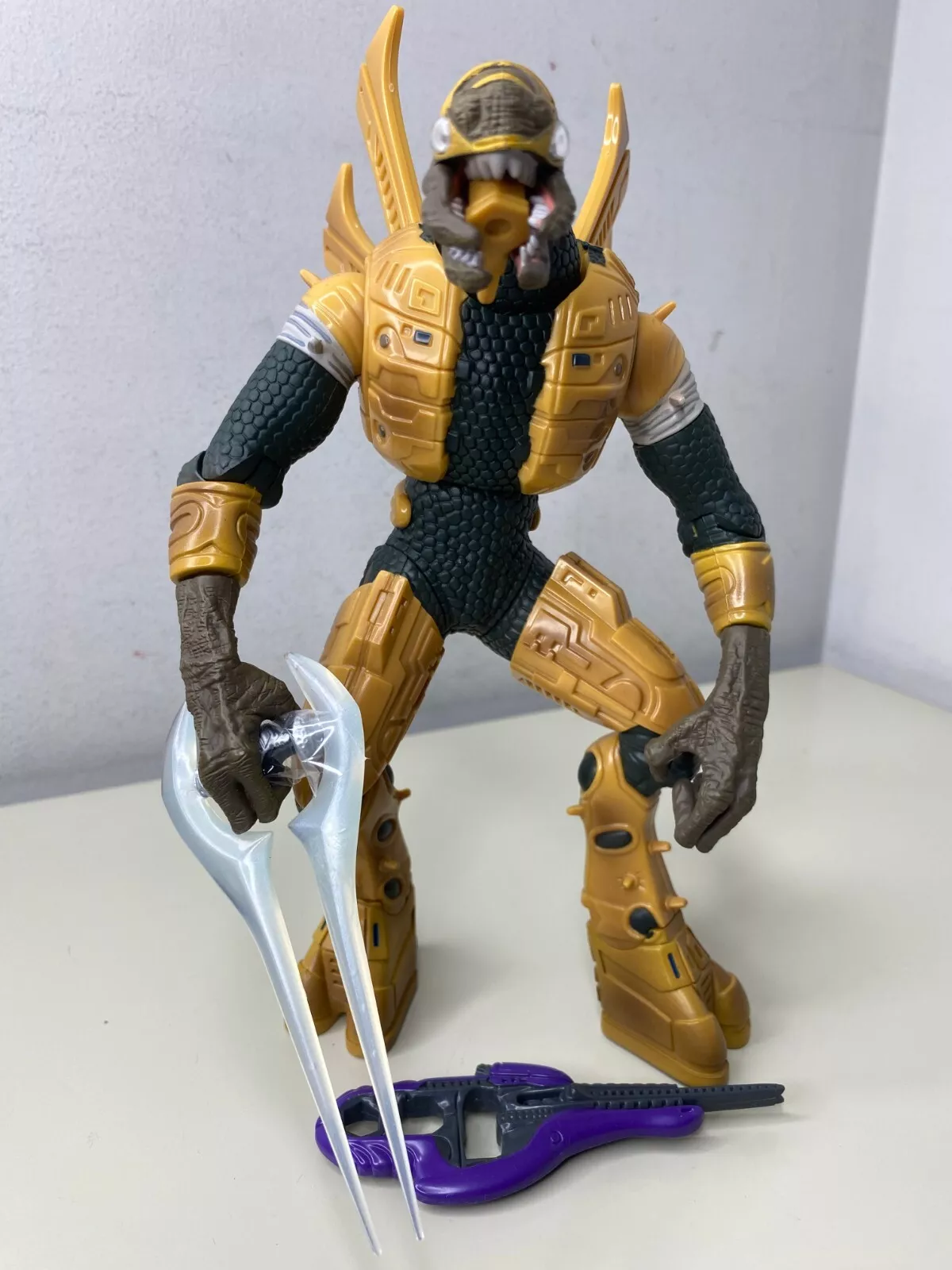 Herectic Elite. Action Figure de HALO-2: Extremamente detalhado, este action figures, da facção Elite é totalmente articulado, mede aprox. 25 cm de altura, vem equipado com arma, rifles de plasma Covenant, armadura especial, fabricado pela extinta Joy Ride Studios.