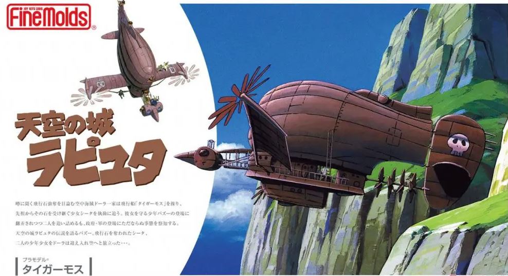 Laputa Dirigível Tiger Moth. Kit para montar de Plastimodelismo, requer montagem e pintura, super detalhado, interior da nave completo, acompanha uma figura da Capitã Dola (escala 1/20), escala 1/144 mede aprox. 20 cm após montado, fabricado pela Fine Molds do Japão.