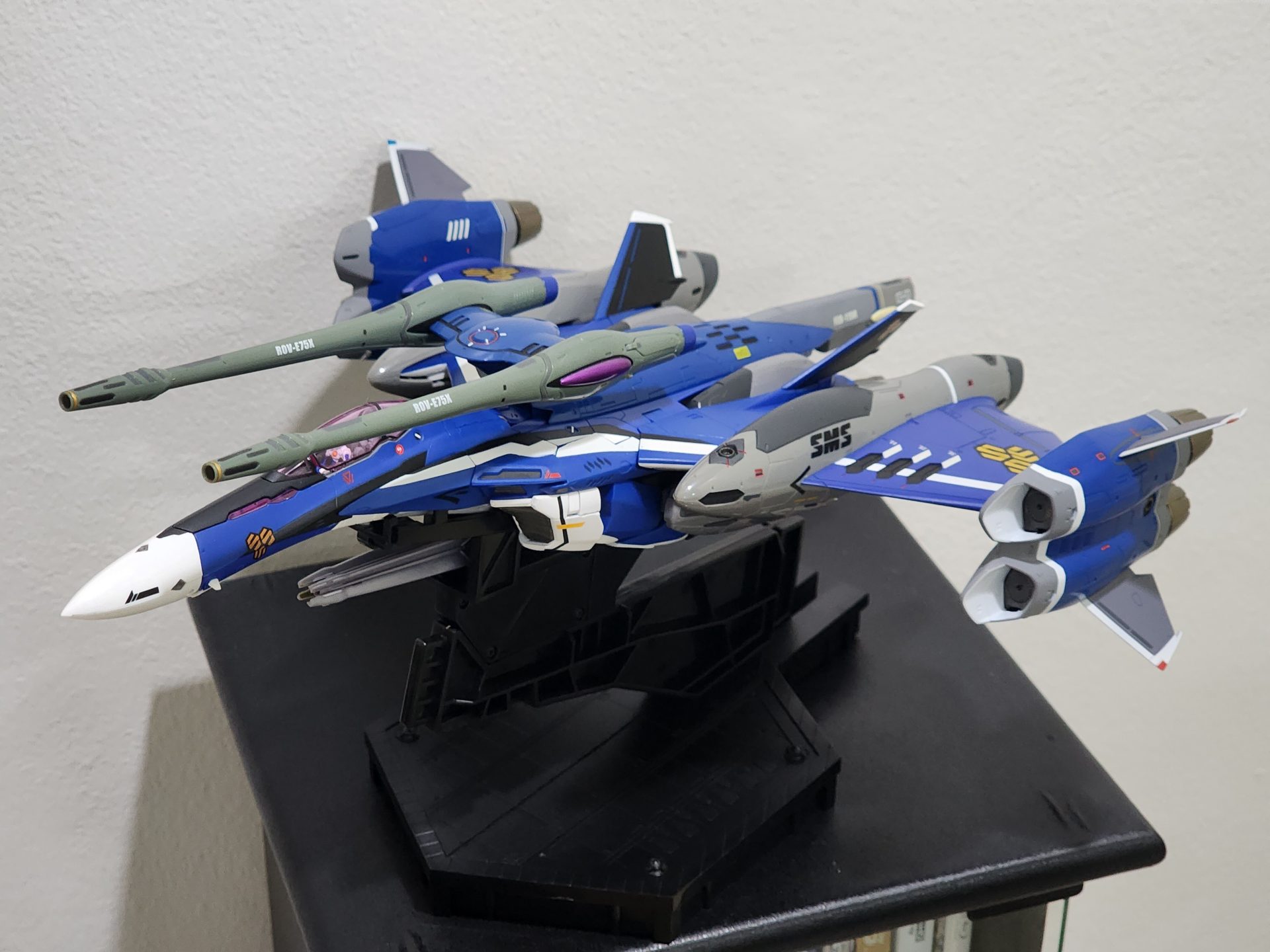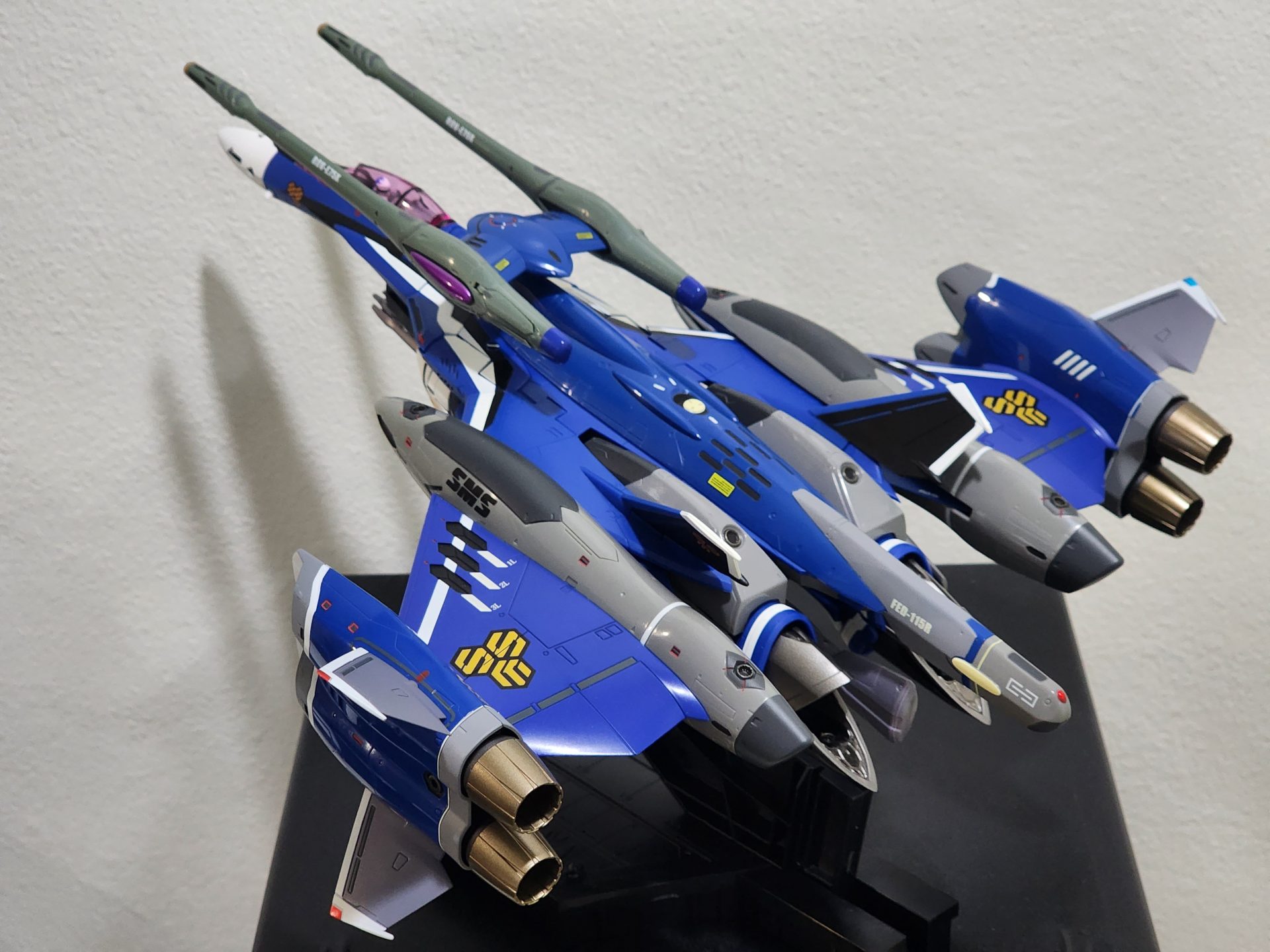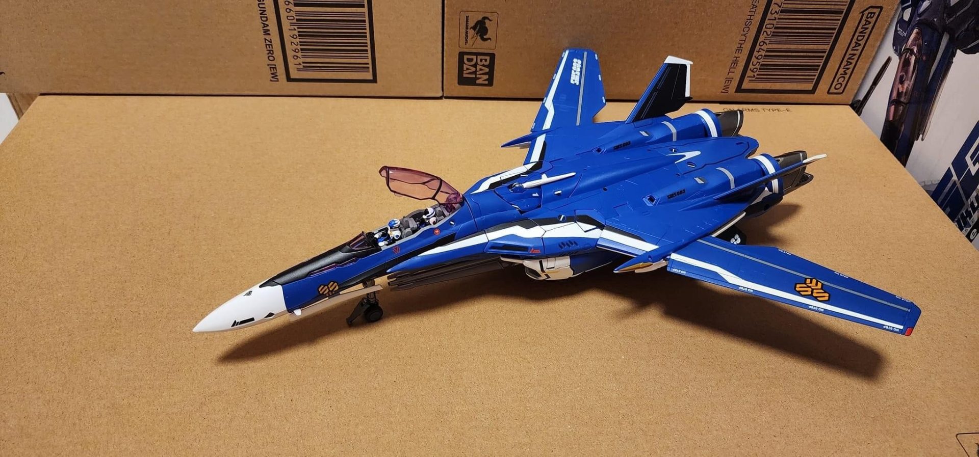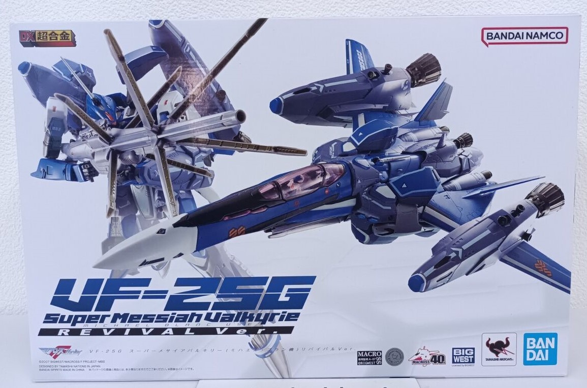 Macross Frontier VF-25G Messiah 1/60 DX Chogokin RENEWAL. Action Figure super hyper detalhado, fabricado pela Bandai do Japão, versão RENEWAL (remodelado). Na escala 1/60, mede aprox. 30 cm de comprimento (no modo caça), transforma-se em modo Batroid (Robô), Gerwalk (caça com braços e pernas) e Fighter (Caça), acompanha vários acessórios removíveis, extremamente articulado, acompanha arma transformável, acompanha quatro pares de mãos, trens de pouso retráteis, carlinga escamoteável com interior detalhado e piloto e muito mais. Um super item colecionável de Macross Frontier.