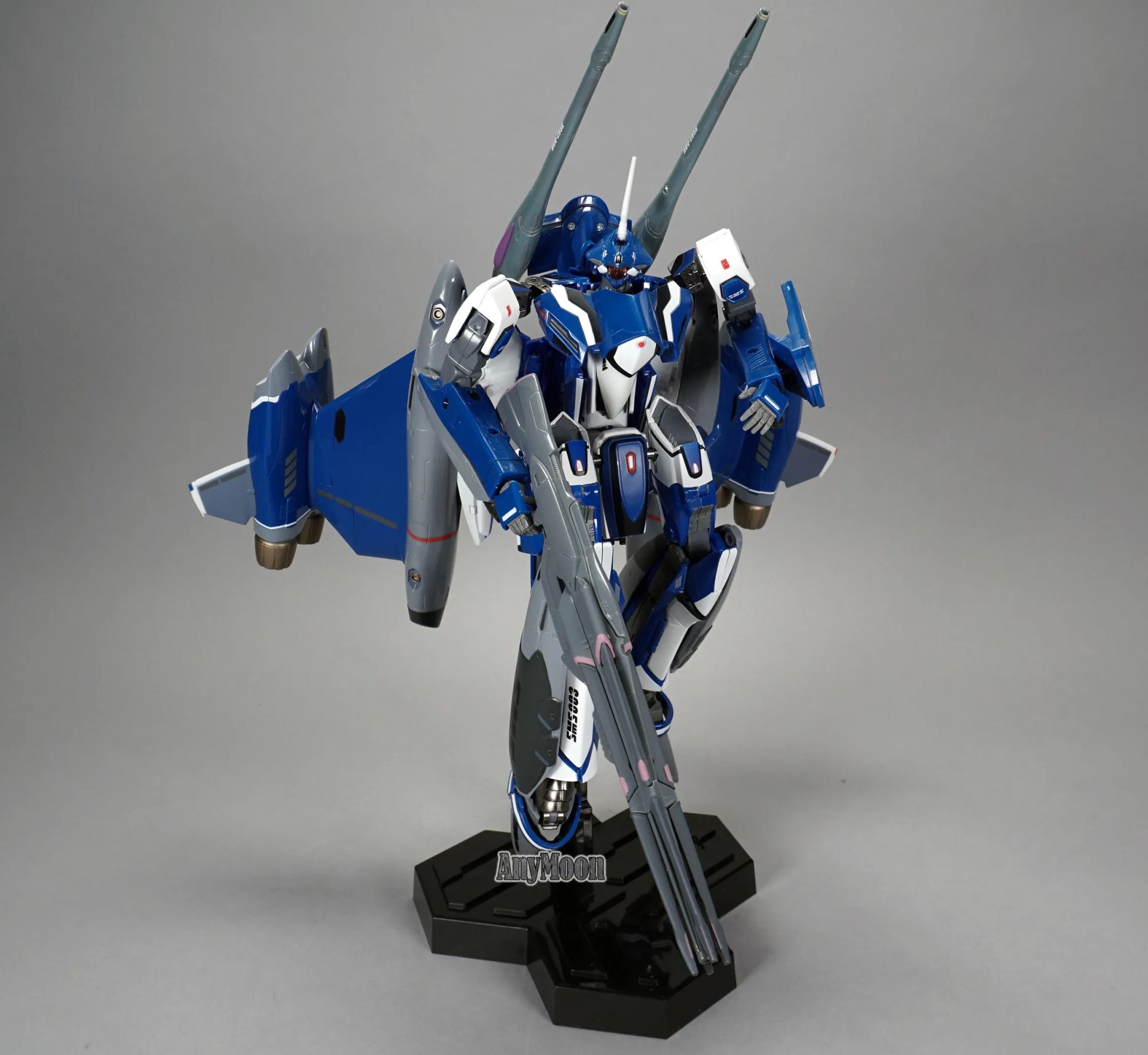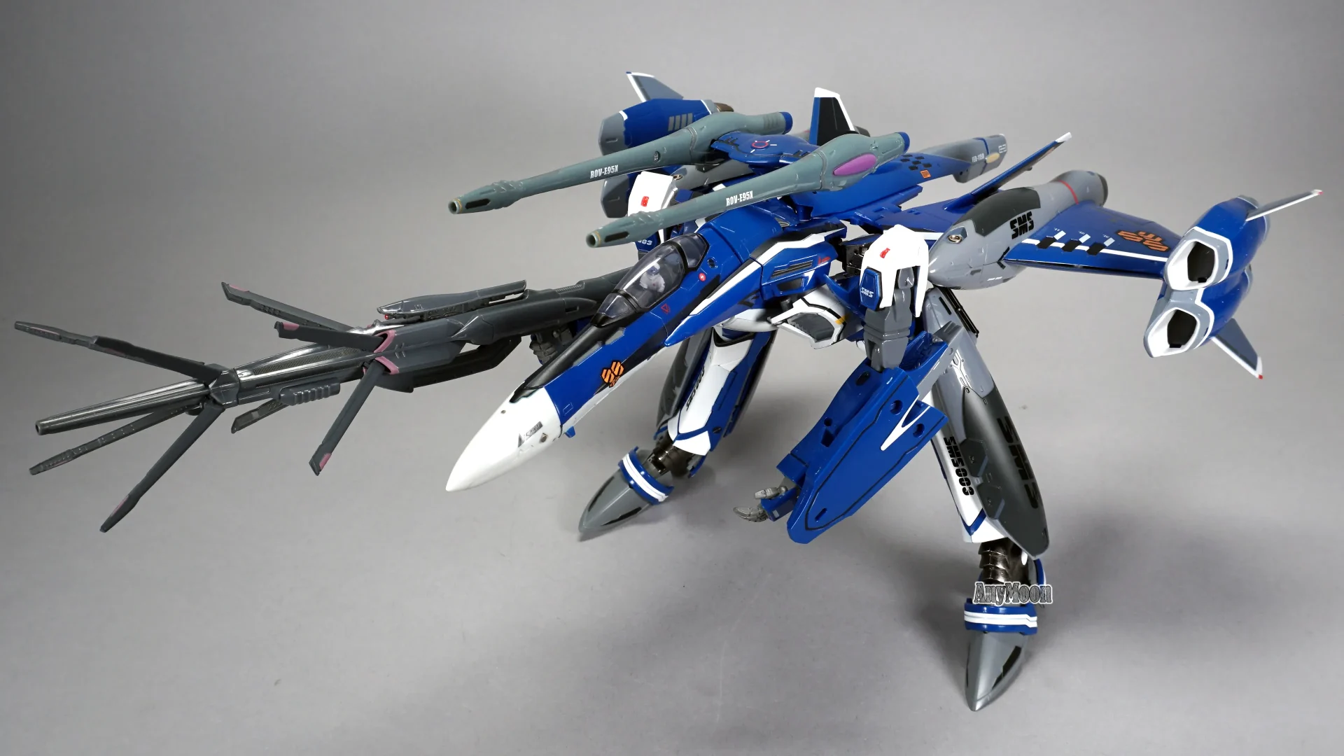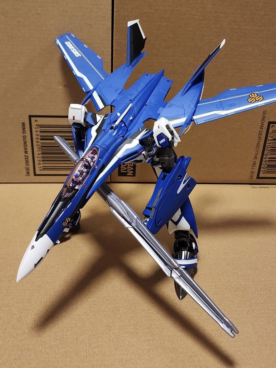 Macross Frontier VF-25G Messiah 1/60 DX Chogokin RENEWAL. Action Figure super hyper detalhado, fabricado pela Bandai do Japão, versão RENEWAL (remodelado). Na escala 1/60, mede aprox. 30 cm de comprimento (no modo caça), transforma-se em modo Batroid (Robô), Gerwalk (caça com braços e pernas) e Fighter (Caça), acompanha vários acessórios removíveis, extremamente articulado, acompanha arma transformável, acompanha quatro pares de mãos, trens de pouso retráteis, carlinga escamoteável com interior detalhado e piloto e muito mais. Um super item colecionável de Macross Frontier.