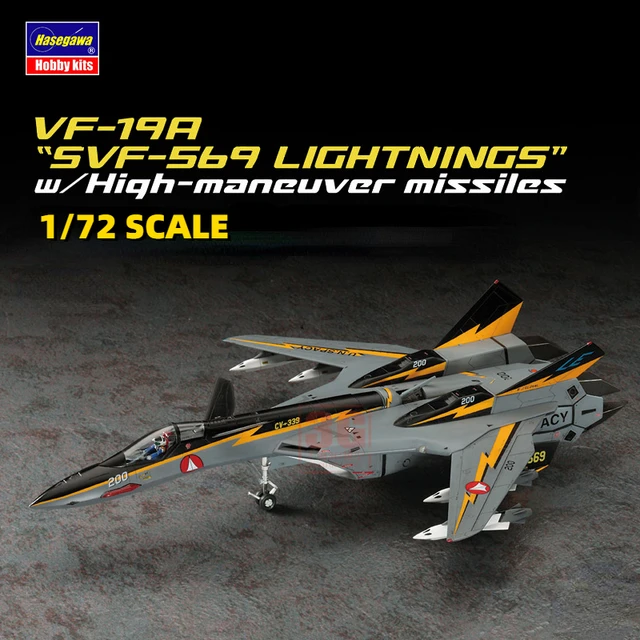 Macross Plus VF-19A Lightnings Squadron. Kit p/ montar de plastimodelismo, requer montagem e pintura, na escala 1/72, mede aprox. 30 cm, extremamente detalhado, scribers fundos, decais, fabricado pela Hasegawa do Japão. Item não mais fabricado !