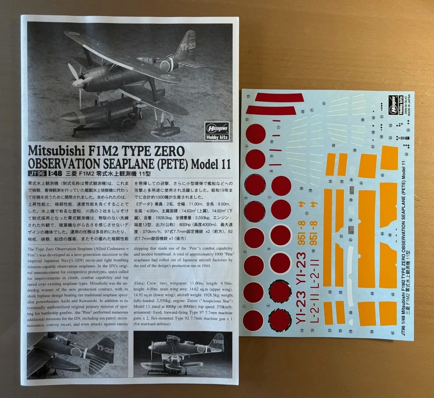 Mitsibishi F1M2 Type Zero “Pate”. Kit para montar de Plastimodelismo, requer montagem e pintura, super detalhado, interior completo, acompanha decais, escala 1/48 mede aprox. 20 cm, fabricado pela Hasegawa.