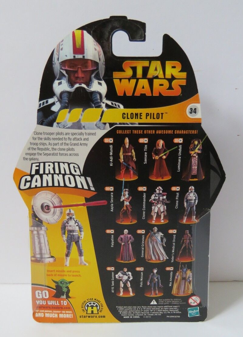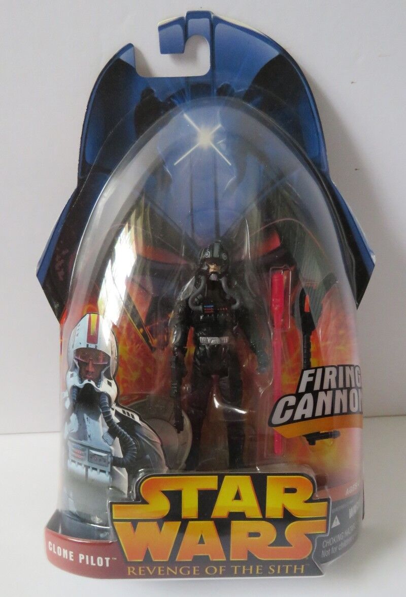 Star Wars Clone Pilot Black. Figura super articulada, vem com arma, detalhes autênticos, cartela de luxo da coleção Revange of the Sith, mede aprox. 10 cm de altura, fabricado pela Hasbro.