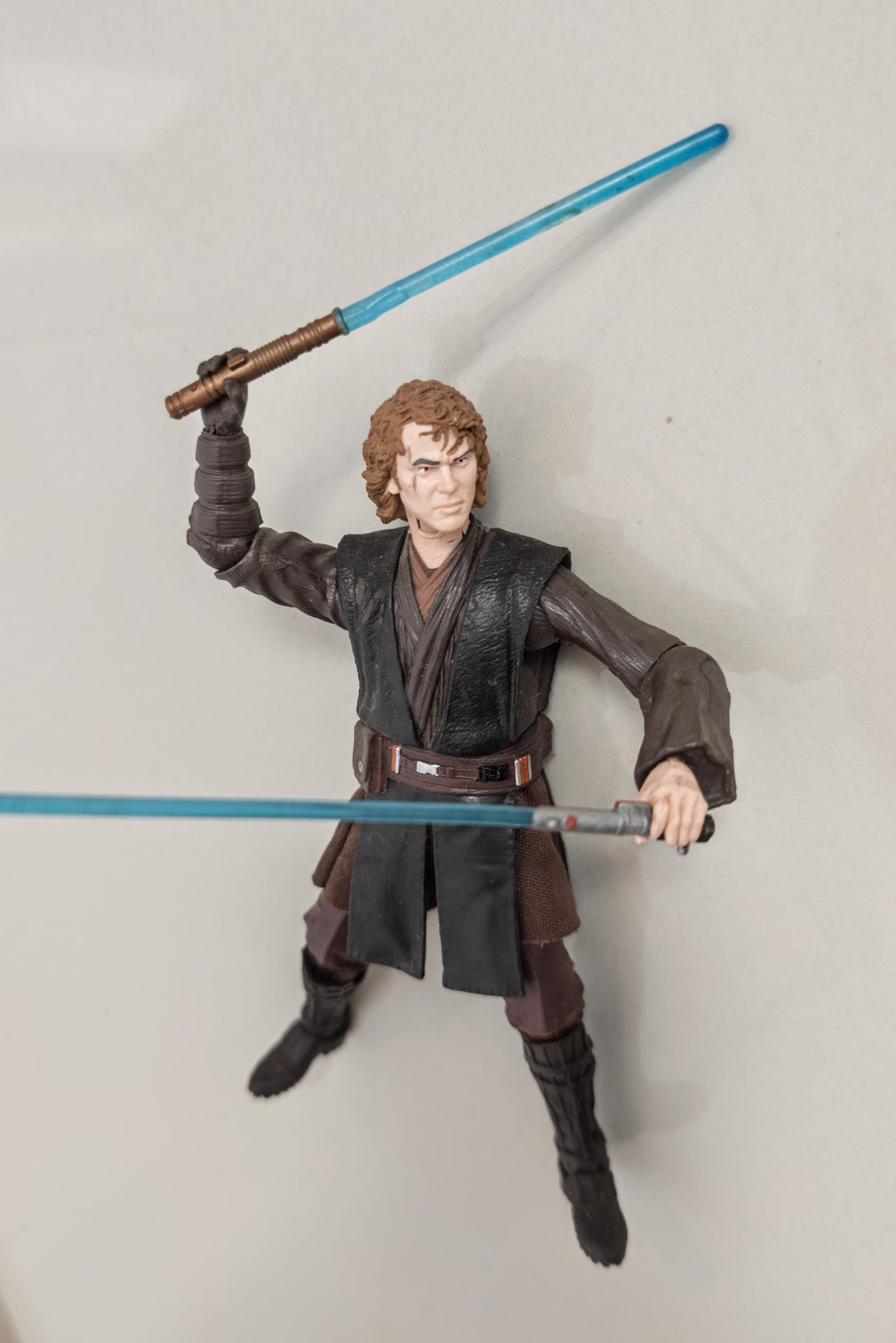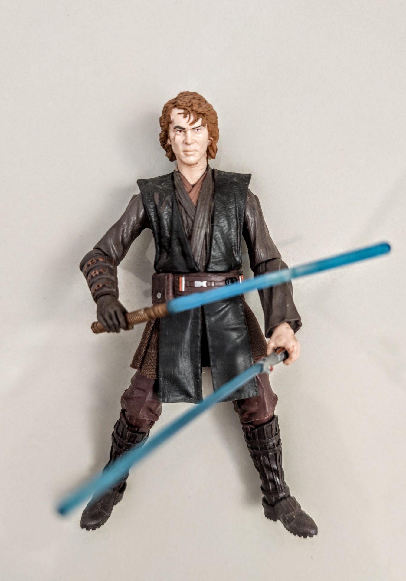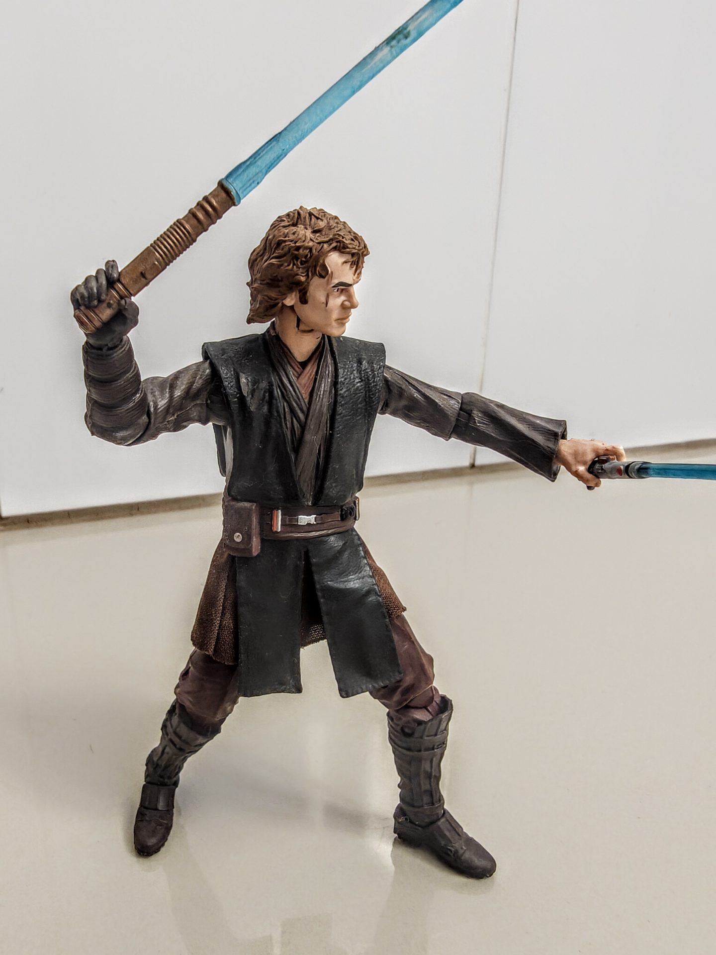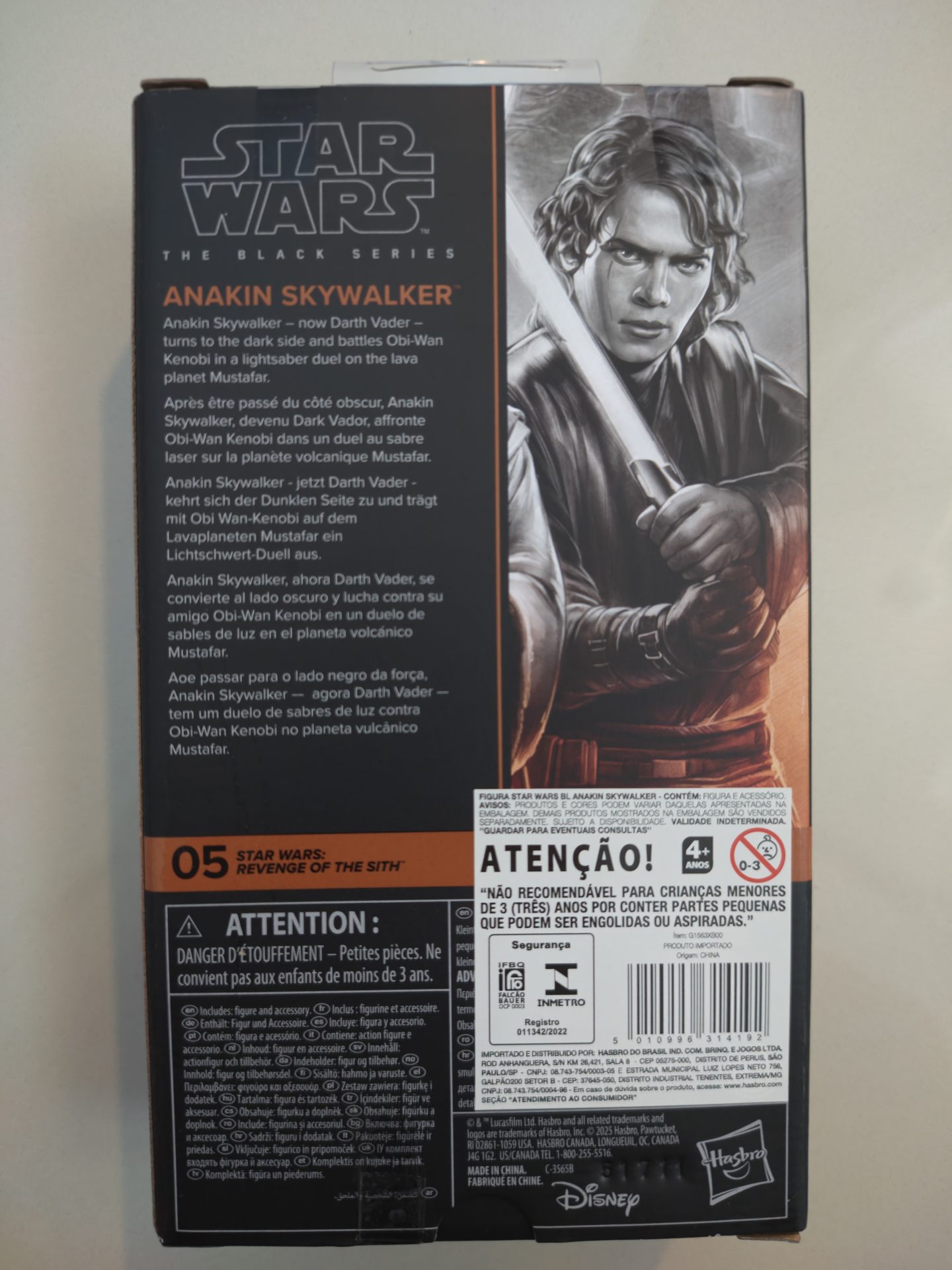 Star Wars Anakin Skywalker. Action Figure Black Series 6 polegadas, totalmente articulada, acompanha armas, detalhes autênticos, mede aprox. 16 cm de altura, fabricado pela Hasbro.