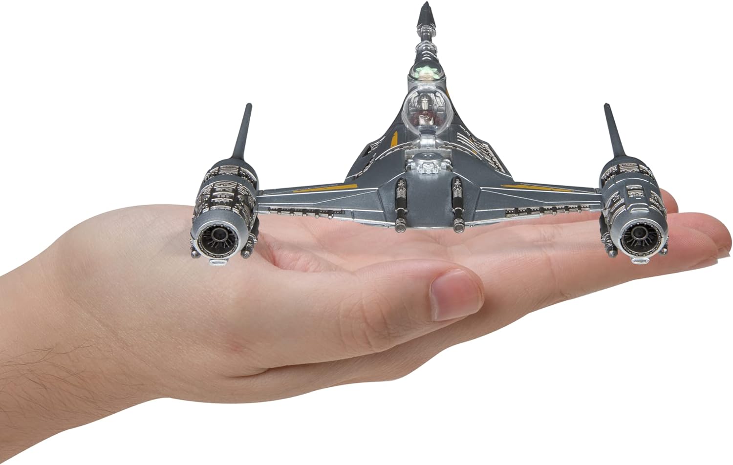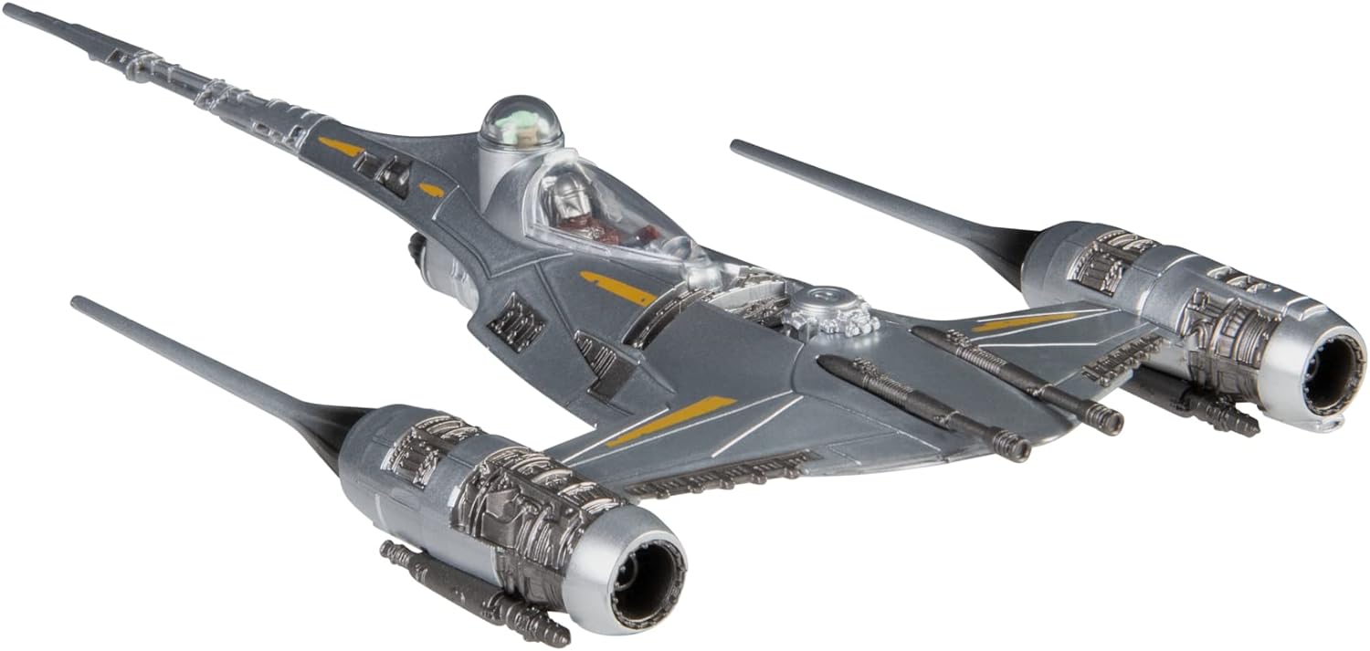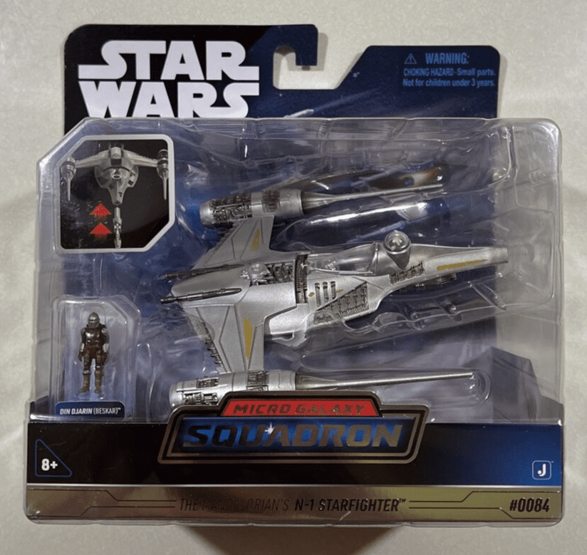 Star Wars Mandalorian’s N-1 Starfighter Micro Galaxy Squadron. Com detalhes incríveis, interior da cabine acompanha figura articulada do mandaloriano, carlinga abre revela cockpit detalhado, trens de pouso retráteis, mede aprox. 14 cm, fabricado pela Jazwares.