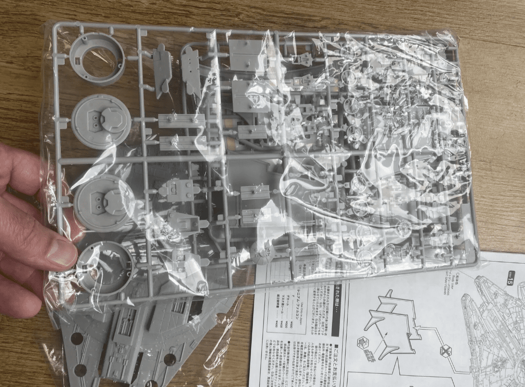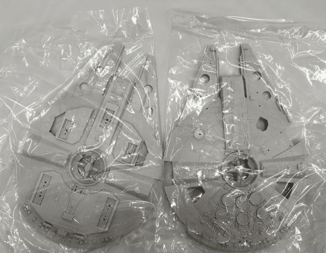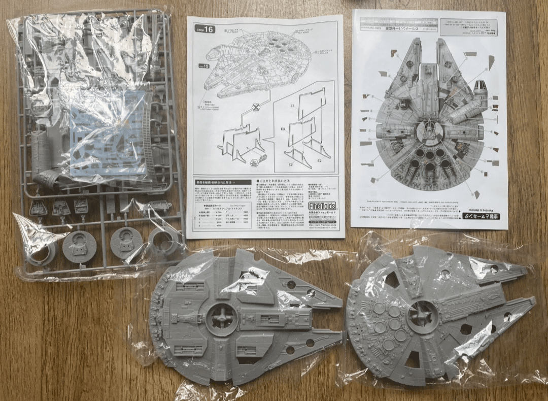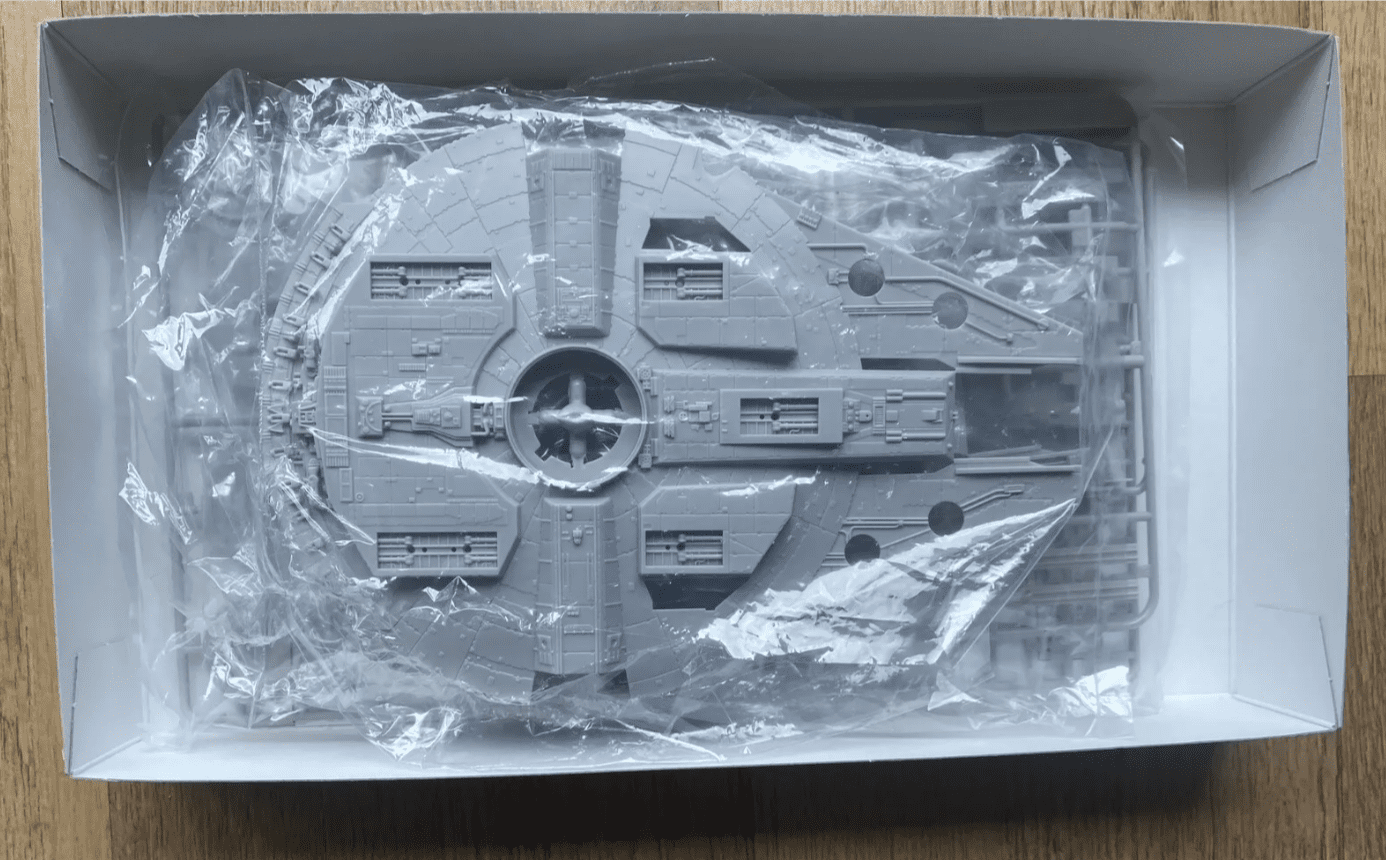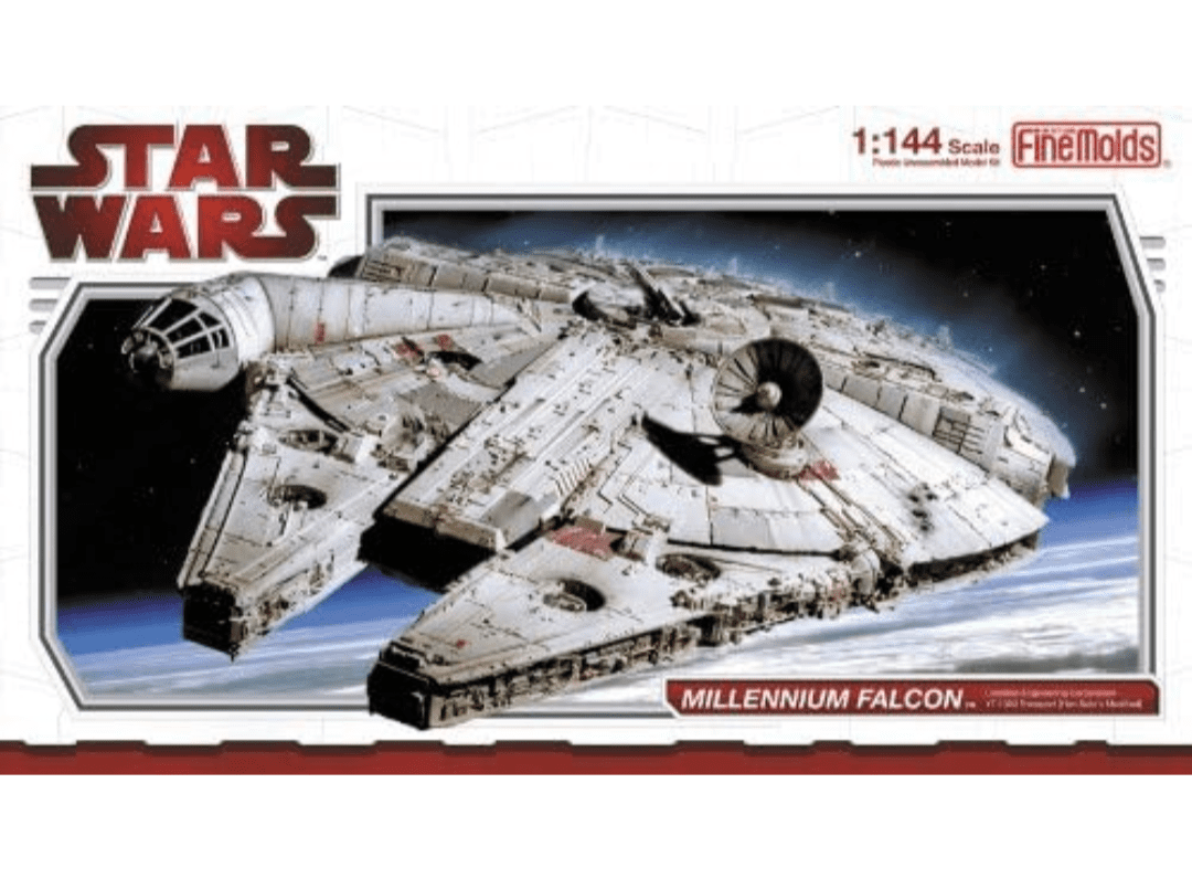 MODELO: Millenium Falcon. Kit para montar de plastimodelismo escala 1/144, requer montar e pintar, detalhes super autênticos da maquete original, interior de cockpit detalhado, pilotos incluídos, acompanha suporte/pedestal móvel, decais, mede aprox. 25 cm após montado, fabricado pela Fine Molds do Japão. UMA RARIDADE !!!
