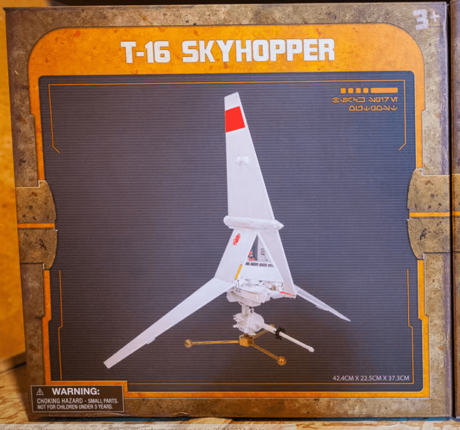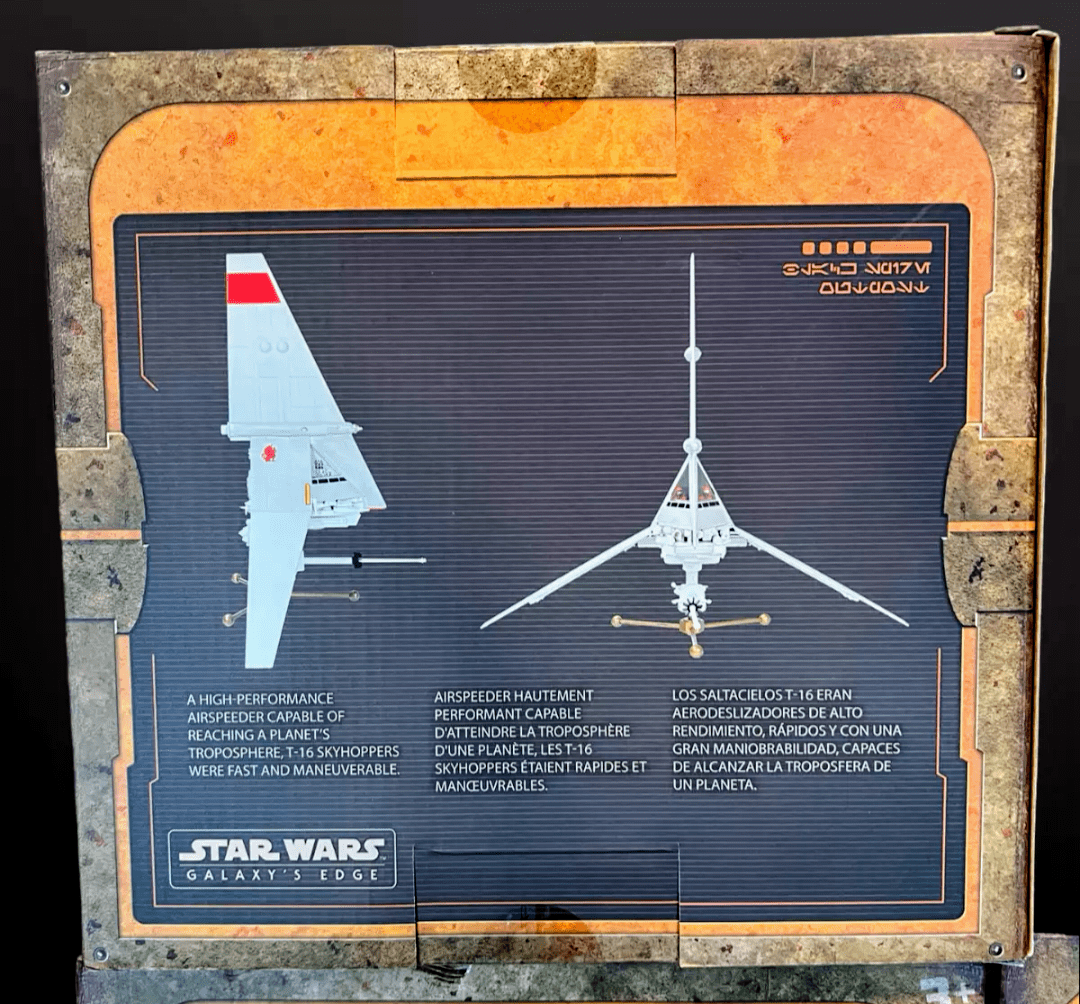 T-16 Skyhoper Disney Exclusive. modelo na escala 1/32, acompanha os pilotos, suporte em metal, mede aprox. 40 cm de altura, detalhes autênticos da maquete original, usada em Star Wars Episódio-4, uma raridade !!! Exclusivo do Galaxy Edge Disney.