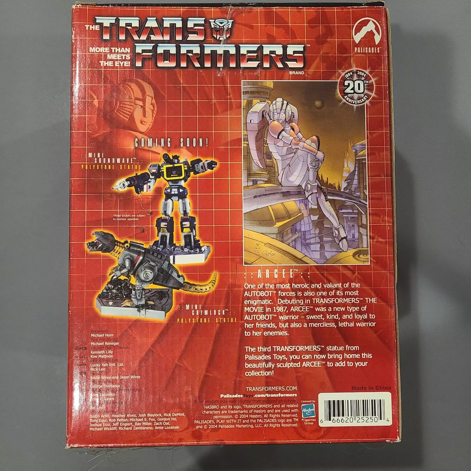 Arcee Resin Statue. Feita pela Palisades, em quantidade limitada a 2000 peças numeradas (a que temos é de número 1371), mede aprox. 17 cm de altura, super bem acabada, base com simbolo Autobot, vem em caixa de luxo, detalhes precisos, etc.