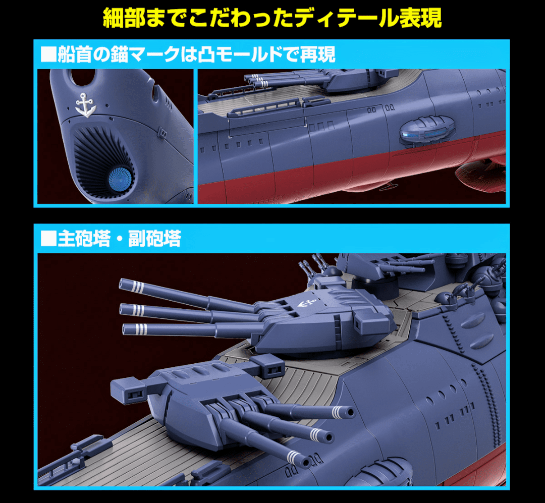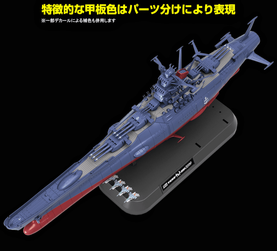Yamato 3199 Model Kit. Kit para montar que NÃO requer cola nem pintura, escala 1/1000 este modelo mede aprox. 33 cm de comprimento, extremamente detalhado, vem com base/pedestal, várias opções de peças para diferentes versões, 4 caças Cosmo Tiger II na mesma escala, decais, fabricado pela Bandai do Japão.